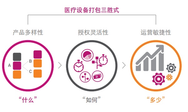 但是,提出這些問題只是成功了一半。一旦問題得到了解答,醫(yī)療設(shè)備供應(yīng)商需要準(zhǔn)備好合適的工具來做出行動(dòng)。如果某個(gè)醫(yī)療機(jī)構(gòu)只想要功能集合中的一部分,供應(yīng)商需要能夠以較低的價(jià)格提供基本捆綁包。例如,如果某醫(yī)院或診所無法負(fù)擔(dān)一次性購買整套醫(yī)療設(shè)備的費(fèi)用,供應(yīng)商需發(fā)能夠提供訂閱或者按使用付費(fèi)授權(quán)模式。采取行動(dòng)的能力需要產(chǎn)品的多樣性、授權(quán)模式的靈活性以及業(yè)務(wù)的敏捷性。