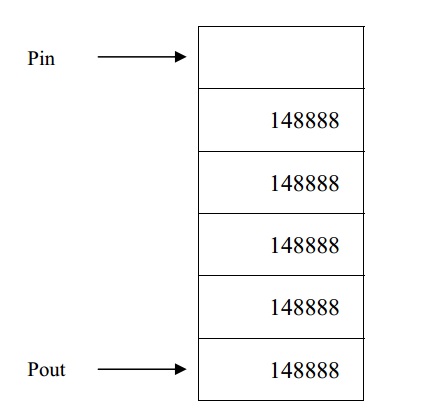 在上圖中,有一個(gè)初始化了的隊(duì)列,共有 6 個(gè)單元,初始數(shù)據(jù)為 148888,當(dāng)發(fā)生的返回值不為 0 時(shí),將 205429 賦給 Pin,并使隊(duì)列移動一個(gè)單元。在 Pout 處檢測被推出的數(shù)據(jù),當(dāng)為 148888 時(shí)不做動作,當(dāng)為 205429 時(shí)即認(rèn)為非法。