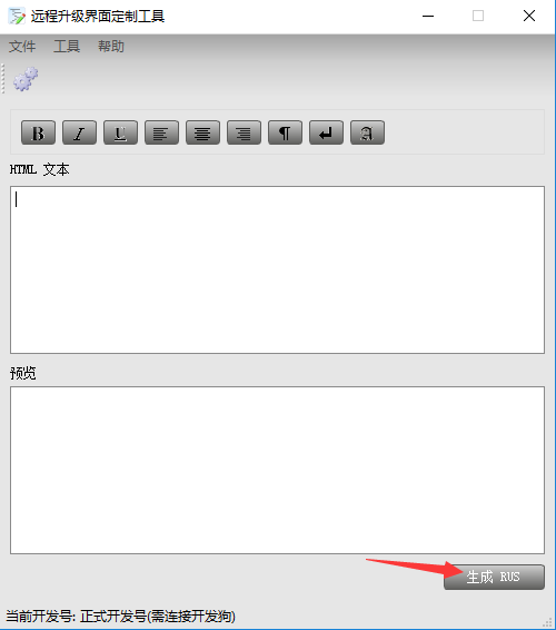 在上面菜單的工具項(xiàng),選擇【設(shè)置】,勾選【使用正式開發(fā)號】,插上主鎖后點(diǎn)【生成RUS】