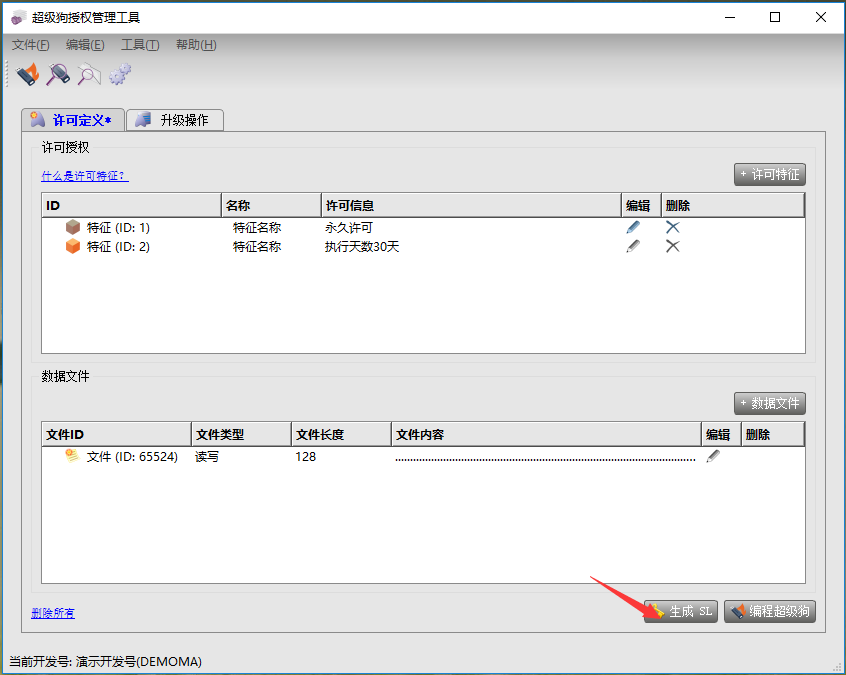 設(shè)置完對應(yīng)的特征,此特征與硬鎖設(shè)置完全一樣,點(diǎn)【生成SL】