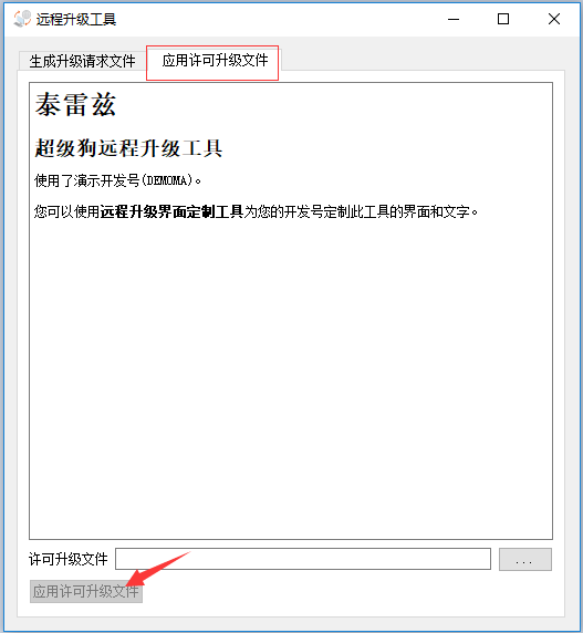 在客戶電腦上打開之前生成的RUS軟鎖安裝工具,選擇【應(yīng)用許可升級文件】項(xiàng)